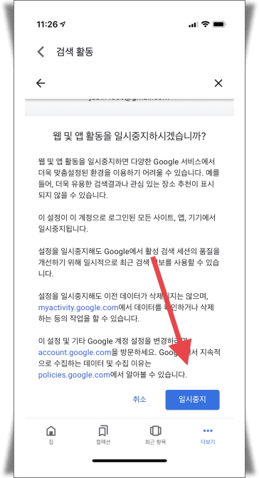 | 웹 및 앱 활동을 일시중지하시겠습니까? |